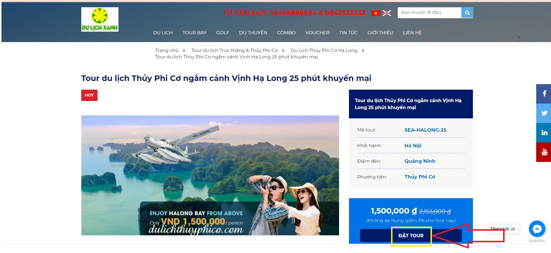 CÁCH 1: ĐẶT TOUR TRỰC TIẾP